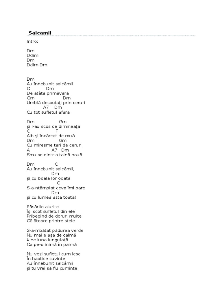 Tudor gheorghe au înnebunit salcâmii versuri. Au innebunit salcamii de atata primavara umbla despuiati prin ceruri cu tot sufletu n afara si l au scos de dimineata alb si incarcat de roua cu miresme tari de ceruri smulse dintr o taina noua au innebunit salcamii si cu boala lor odata s a ntamplat ceva imi pare si cu lumea asta toata pasarile aiurite isi scot sufletul din ele pribegind de doruri multe. Au înnebunit salcâmii de atâta primăvară umblă despuiați prin cerur. Feri predescu 23 octombrie 2019.