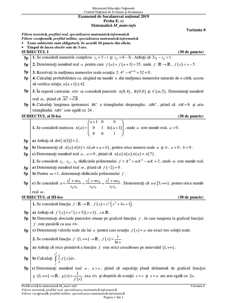 Bar barem de corectare var varianta cu subiecte. Subiecte şi barem informatică bac 2019. D informatică limbajul c c simulare filieră teoretică profil real specializare matematică informatică matematică informatică intensiv informatică filieră vocaţională profil militar specializare matematică informatică toate subiectele sunt obligatorii. Examenul de bacalaureat naţional 2019 proba e.