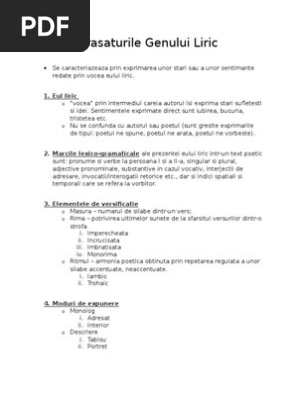 In cazul in care nu gasiti referatul marcile lexico gramaticale va rugam sa efectuati o cautare dupa un singur cuvant cheie. Eul liric este vocea autorului în operele aparținând genului liric și poate fi identificat la nivelul mărcilor lexico gramaticale. Marcile lexi gramaticale ale e ului liric in mentionezi poezia sunt. Cand ai zis marcile lexico gramaticale te ai referit la cele ale e uli liric.