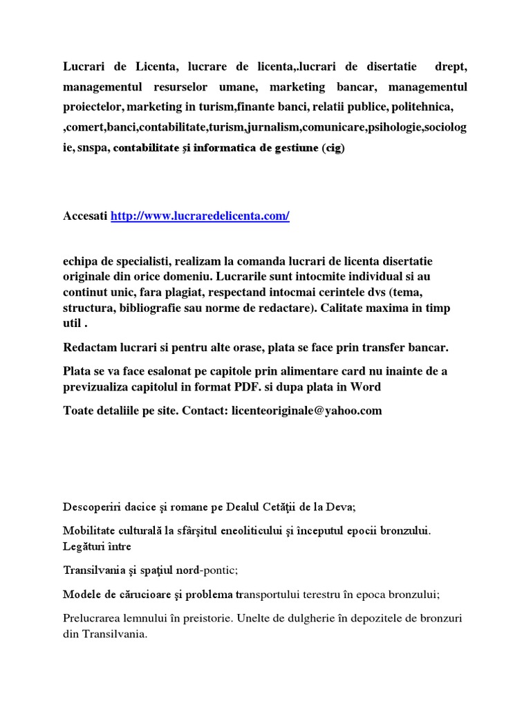 Dupa lamurirea tuturor detaliilor legate de plata cerintele de structura si tematica a lucrarii cuprins si bibliografie consultantii desfasoara activitatea de cercetare documentare si. Cu siguranta lucrarea de licenta este cea mai dificila parte atunci cand vine vorba de absolvirea unei facultati. Lucrare licenta sau lucrare disertatie orice te intereseaza trebuie sa stii ca echipa noastra se adreseaza tuturor studentilor masteranzilor care au un program incarcat si nu au suficient timp sau pur si simplu persoanelor care nu au resursele necesare pentru a pregati acest tip de proiect dorintele tale vor fi scopul nostru principal asa ca nu ezita sa ne contactezi pentru realizarea. Timisoara timis azi 10 00.
