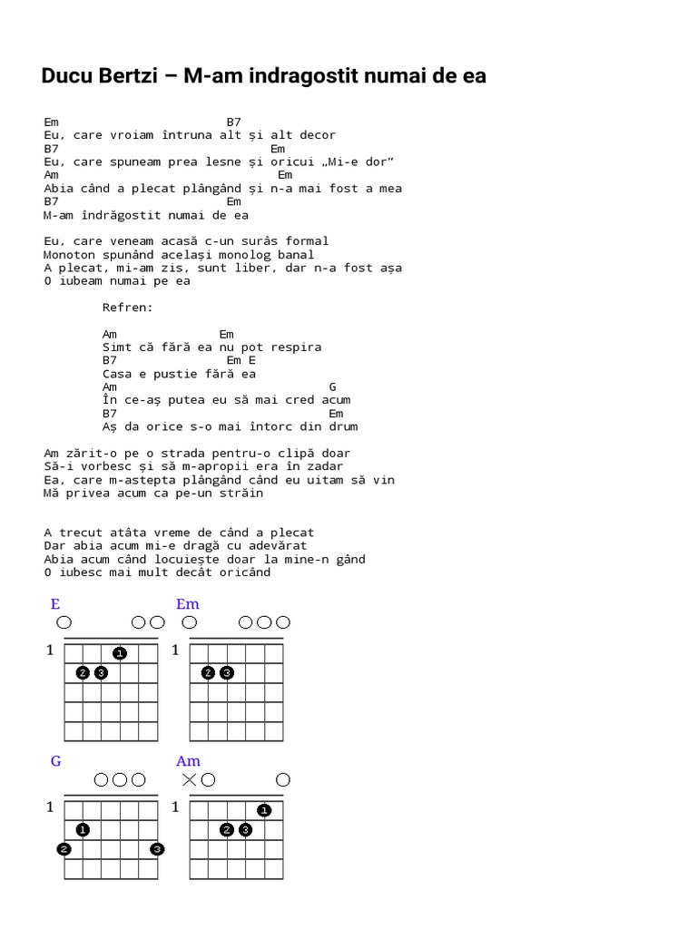M am indragostit numai de ea tab. Ducu bertzi m am îndrăgostit numai de ea. Ducu bertzi verse 1. M am îndrăgostit numai de ea. Acordurile piesei m am indragostit numai de ea de ducu bertzi.