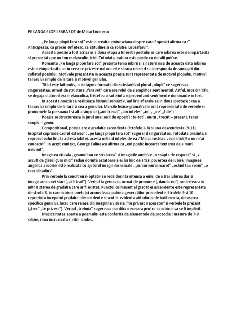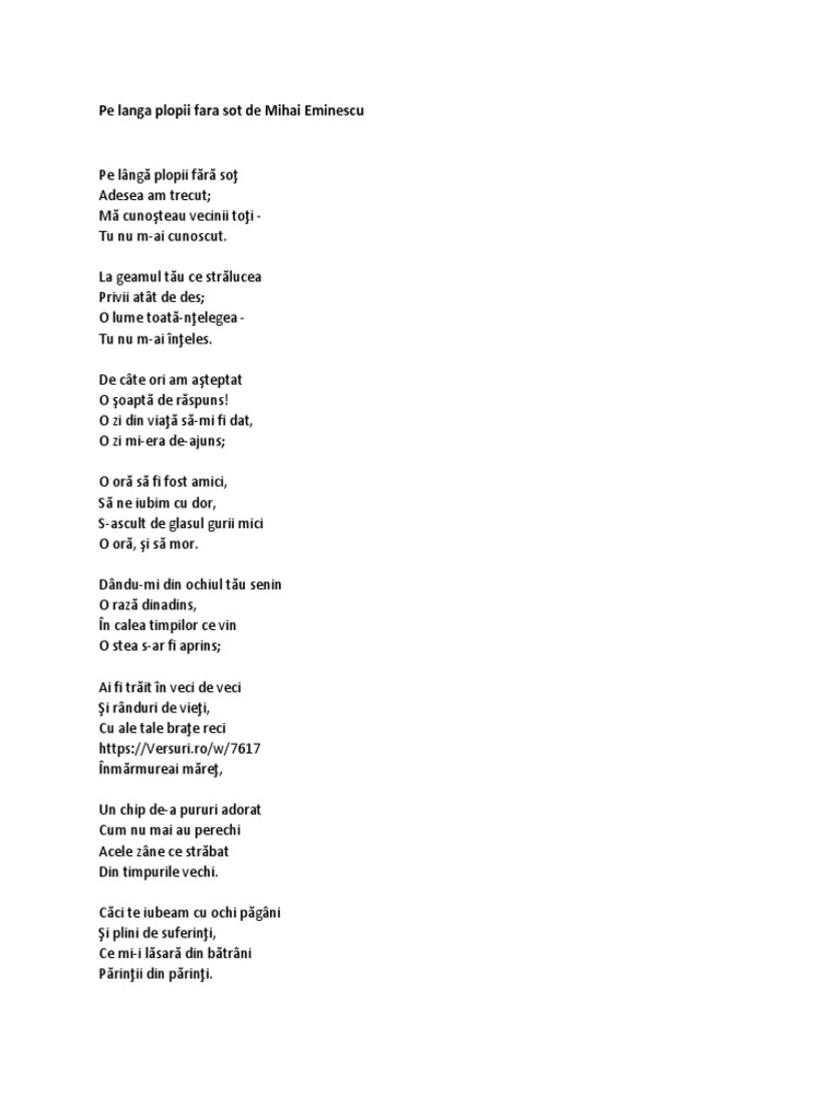 Versuri mihai eminescu poezia pe langa plopii fara sot vocal gheorghe sarac enjoy. De câte ori am aşteptat o şoaptă de răspuns. Eminescu a compus poezia pe lângă plopii fără soț publicată în august septembrie 1883 și apoi în volumul poesii 1884. Mă cunoșteau vecinii toți.