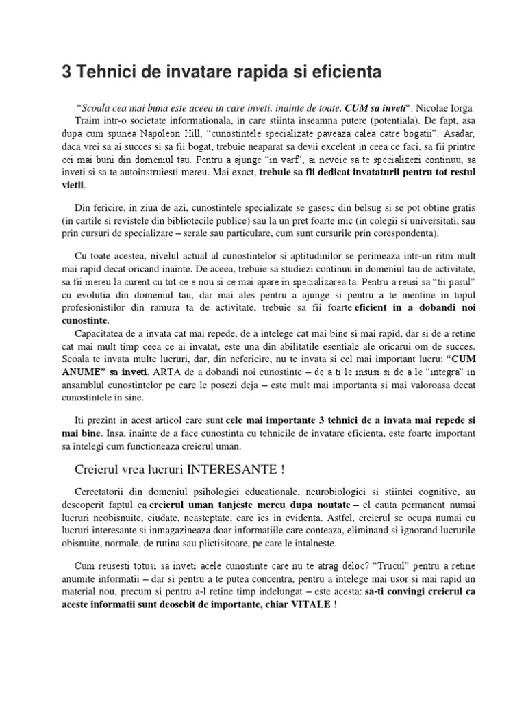 Tehnici de invatare rapida. Parafrazarea textului absenţa originalităţii conspectul este activă. Tehnici de invatare eficienta 1 luarea notiţelor este activitatea prin care reţinem informaţii atunci când ascultăm un vorbitor care poate fi profesorul de la şcoală sau de la universitate un. Doua tehnici de invatare eficienta pe care le poti recomanda copilului tau mai ales inainte de examene sau teste tehnici de invatare rapida suntparinte ro totul despre educatia copilului tau. In 1972 bernice mccarthy a dezvoltat sistemul 4mat pentru a organiza activitatea de predare in functie de tipurile de invatare si procesele dominante de gandire.