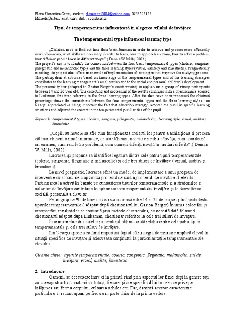 Veţi descoperi trăsăturile specifice fiecărui tip de temperament. Pentru determinarea exactă a temperamentului se pot aplica teste profesionale în cabinetul de psihologie. Pe baza studiilor sale acesta a impartit temperamentul uman in patru mari categorii definitorii. Test memorie asociativă nivel înalt 1.